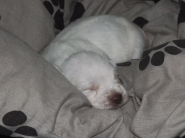Cara Mia del Pino Silvestre, der fünfte Welpe, geboren um 1:58 Uhr